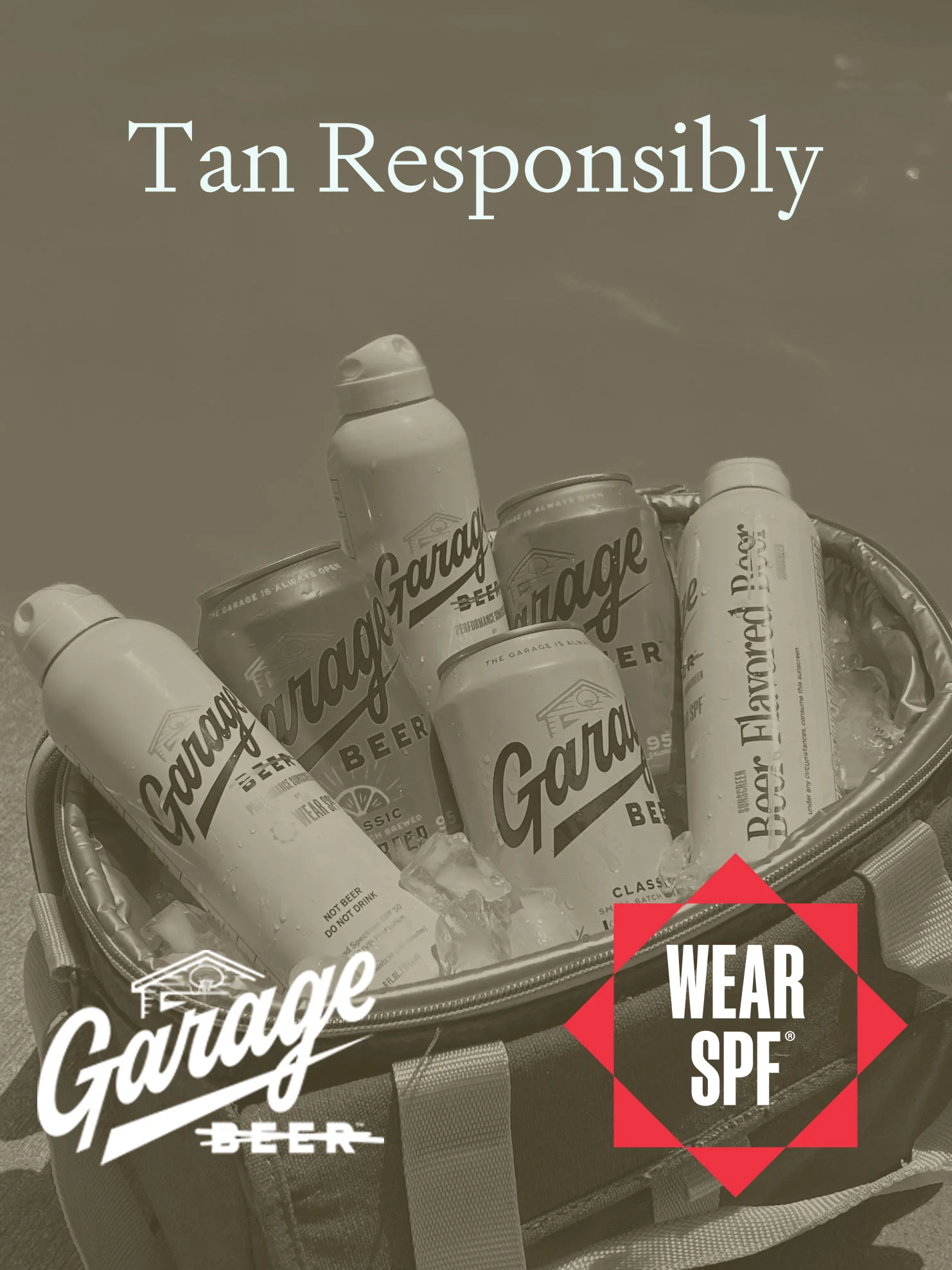 Beer and sunscreen go together like weekends and lawn chairs. Garage Beer + WearSPF 50 Custom Sunscreen Spray cans keep the good times rolling and keep you protected.