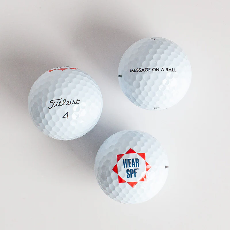 A message on a ball. WearSPF branded Titleist® Pro V1® balls with a special message alignment mark.